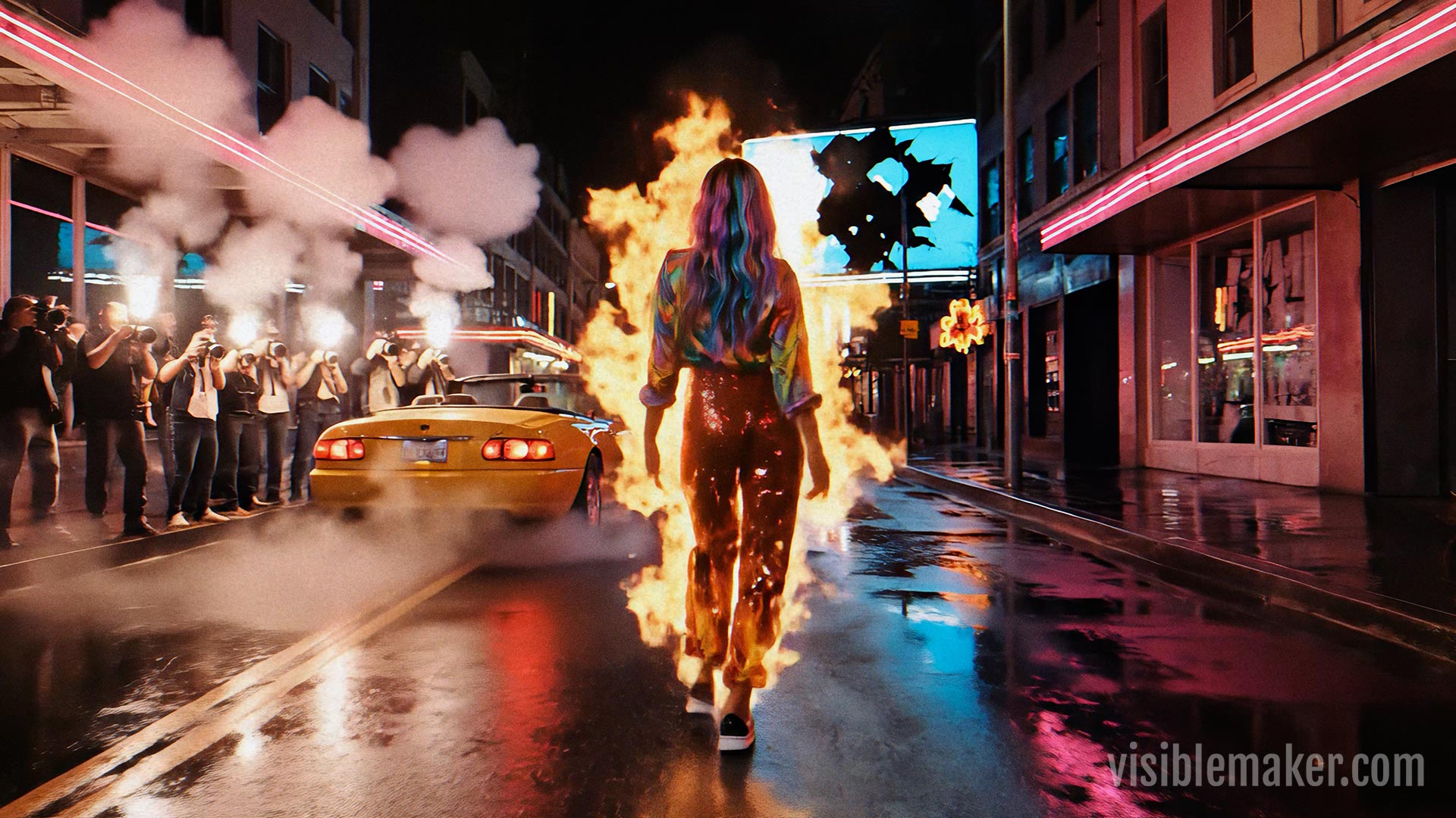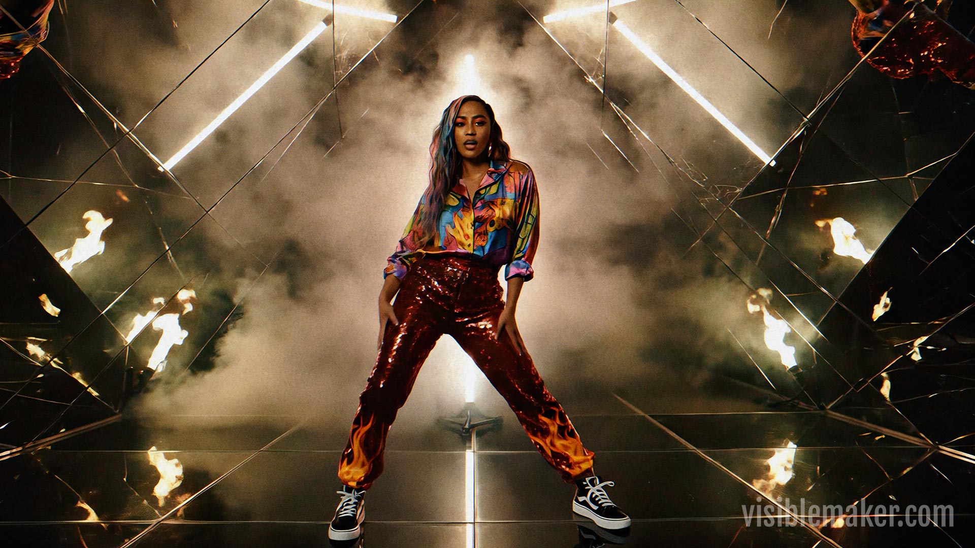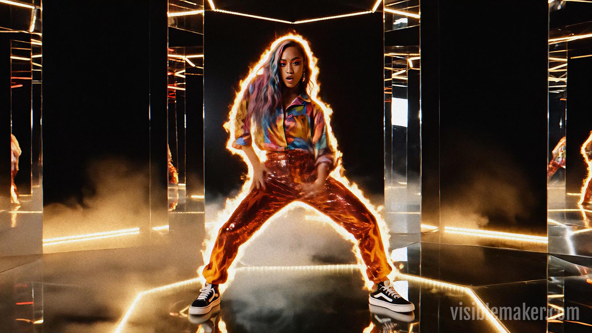 Walk Like Fire is a personal AI music video project — and an original music track created by The Visiblemaker with Suno V5.